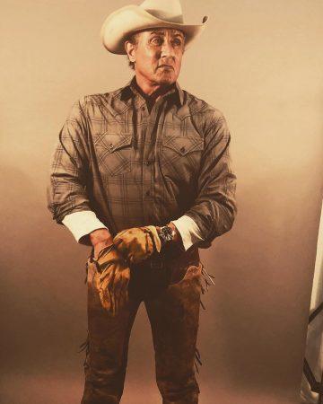 Stallone also posted on Instagram a photo of John Rambo riding a horse.