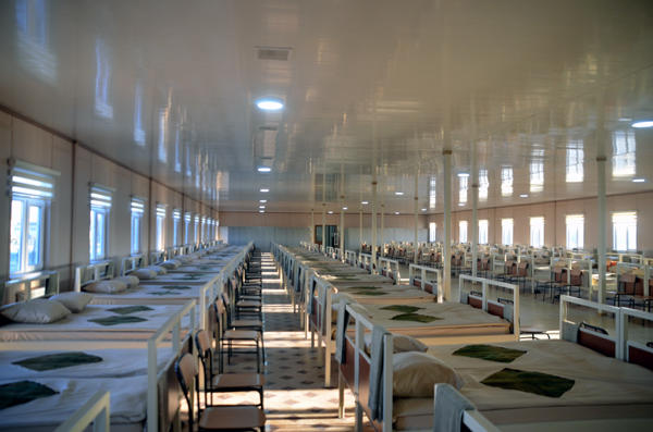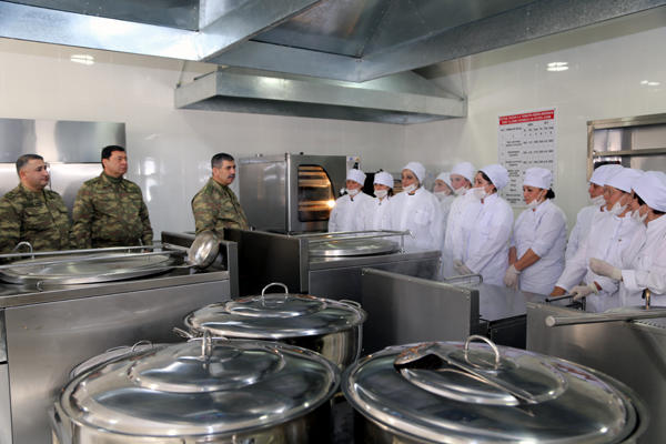 Defense Ministry leadership familiarized with the headquarters, boxes for storage of military equipment, soldiers' barracks, mess hall, boiler room and laundry facility, food stores, medical center, the parade ground and other objects in the territory of the military camp located in the frontline zone.