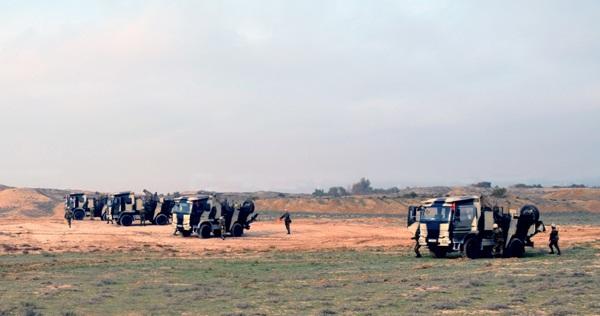The mortar detachments using 120 mm self-propelled systems CARDOM carry out tasks on the destruction of simulated light armored vehicles, living force, firing positions and imaginary enemy targets located behind the natural obstacles in the mountain-forest and steppe areas.
