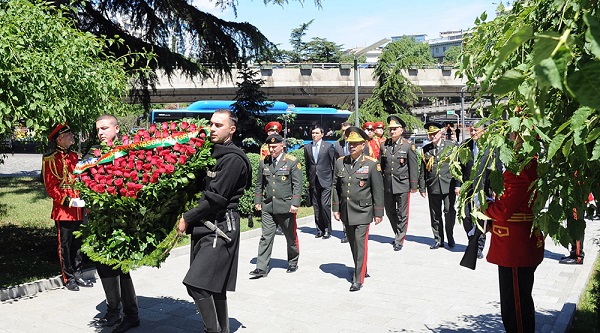 Then the Azerbaijani delegation laid a wreath to the "Heroes Memorial" in Heroes Square in Tbilisi and honored the memory of citizens who died for the independence and territorial integrity of Georgia.