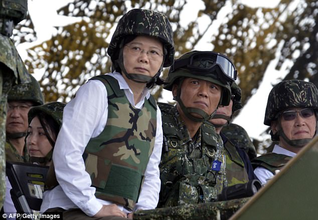 She said while overseeing the exercise: 'When Taiwan shows its determination to take the road of defensive autonomy, it is putting on a display to the world of our determination to protect our home and land.'