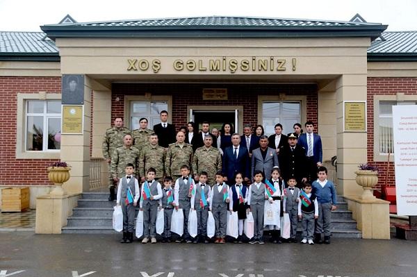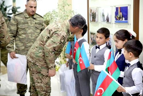 During the meeting with the teachers and pupils of the school in the village of Jojug Marjanli, the Minister of Defense, Colonel General Zakir Hasanov congratulated them on the upcoming holidays and presented the holiday gifts to the schoolchildren.