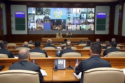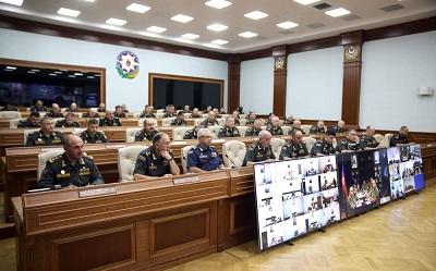 An official meeting under the leadership of Azerbaijani Minister of Defense, Colonel General Zakir Hasanov, with the participation of Deputy Defense Ministers, Commanders of types of troops, Chiefs of Main Departments, Departments and Services of the Ministry, Commanders of Army Corps, as well as Commanders of formations and other officials involved in meeting via the video conference has been recently held at the Central Command Post.