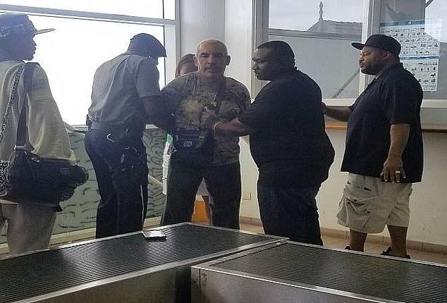 But they were pulled aside by customs officials after landing and said to have been held for eight hours before being let go and then arrested as they tried to leave the island days later.
