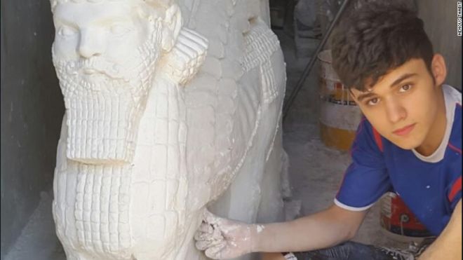 But 17-year-old Nenous Thabit rolled up his sleeves and began work on replicating the sculptures.