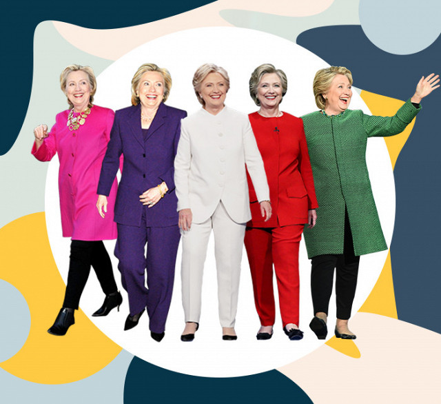 Remember those pink hats everyone wore to Women's Marches around the country on January 21? The hue is unapologetically feminine and represents compassion and love. Clinton has chosen shocking pink on multiple occasions over the years, including for her most recent public appearance: a dedication ceremony for a series of stamps honoring Oscar de la Renta.
