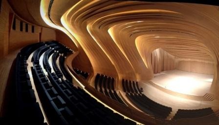 The floor, walls and ceilings of the curvaceous auditorium of this bravura cultural centre, opened in 2012, form a seamless whole. The effect is magical and truly remarkable, as if the architect, Zaha Hadid has dissolved the normal rules of construction and reinvented their own. In fact, the geometrically complex laminated white-oak shell of the auditorium is set within a steel frame. This gives the necessary rigidity to the structure while allowing and the auditorium to feel as if it is floating in free space. Zaha Hadid had long wanted to shape such a fluid architecture. With the latest computer wizardry, she has achieved this in Baku. You will never look at a ceiling in quite the same way again.