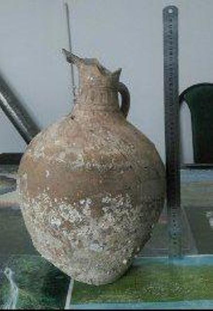 He added that the buff pottery crock has a handle, but is partly covered with sea deposits including sea shells. The shape and color of the crock shows that it belongs to the late Sassanid or early Islamic era.