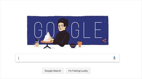The search engine’s home page showed a caricature of Koral working with ceramic at a table with her tools.