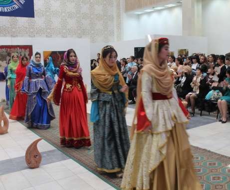 The fashion show includes the region's wedding, ceremonial dresses as well as noble women clothing.The stunning silk dresses decorated with precious stones has drawn great interest and were awarded special prizes from the Organizing Committee.