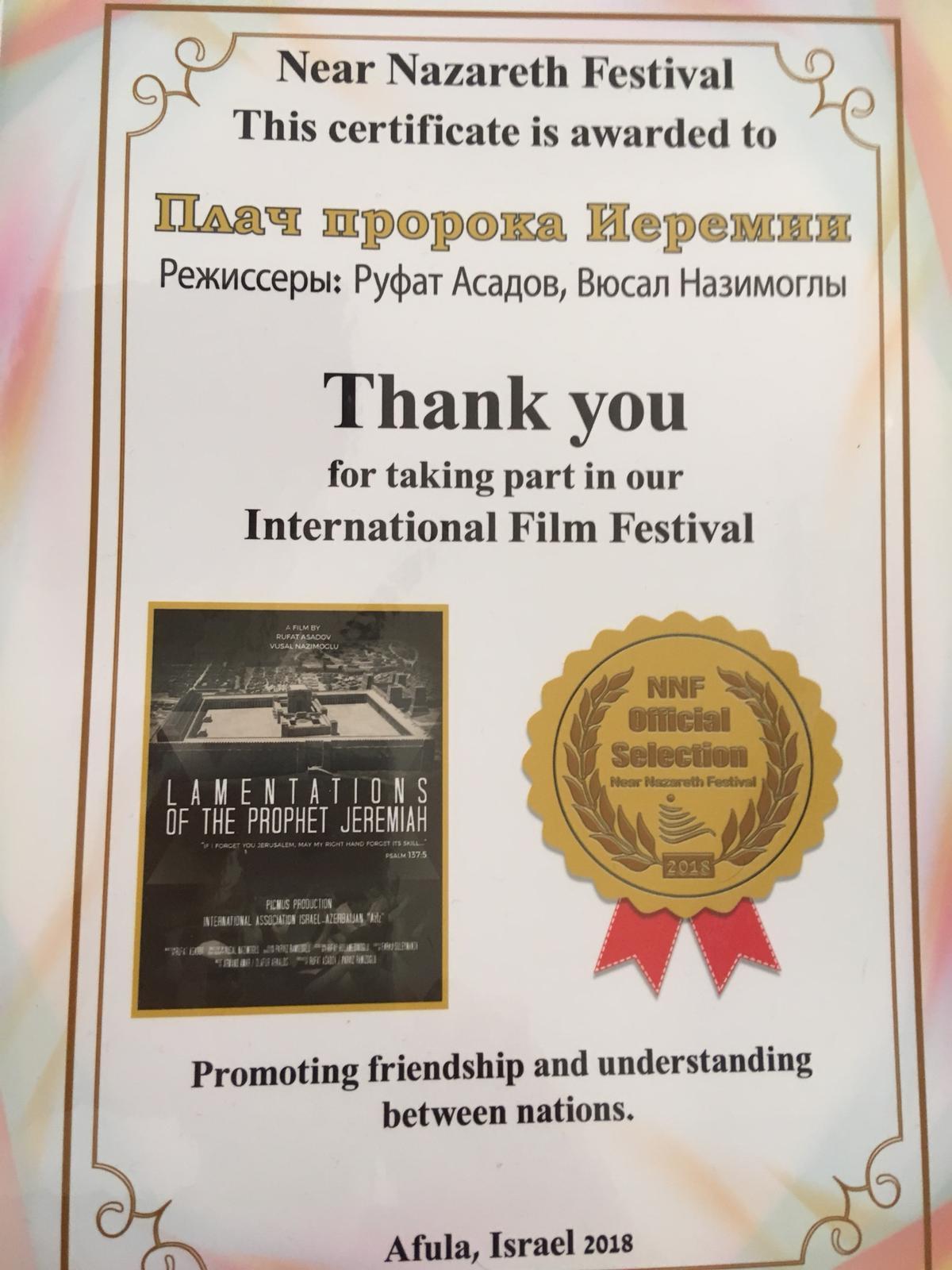 A presentation ceremony of the documentary film "The Tears of the Prophet Jeremiah" was held on December 4 in Israel within the frame of the “Near Nazareth International” Film Festival, which was directed by Rufat Asadov and Vusal Nazimoglu.