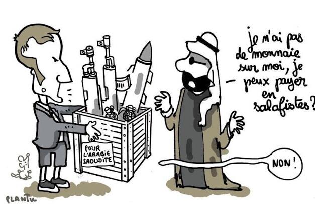 Salman says, "I have no money to pay for it, but I can give you the Salafis." The French cartoonist has thus sought to protest France's sale of arms to Saudi Arabia.