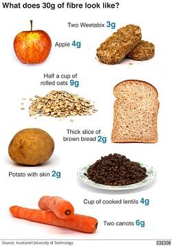 The researchers, at the University of Otago, in New Zealand, and the University of Dundee say people should be eating a minimum of 25g of fibre per day.