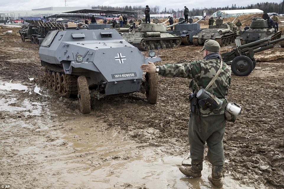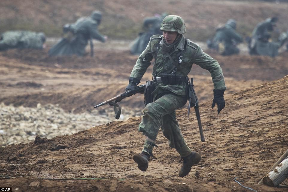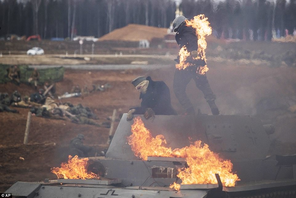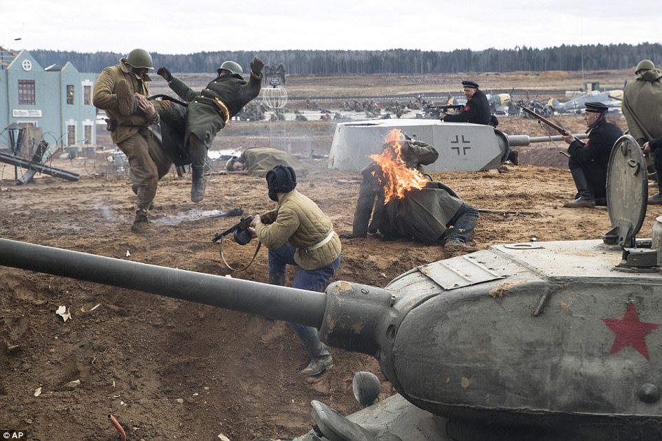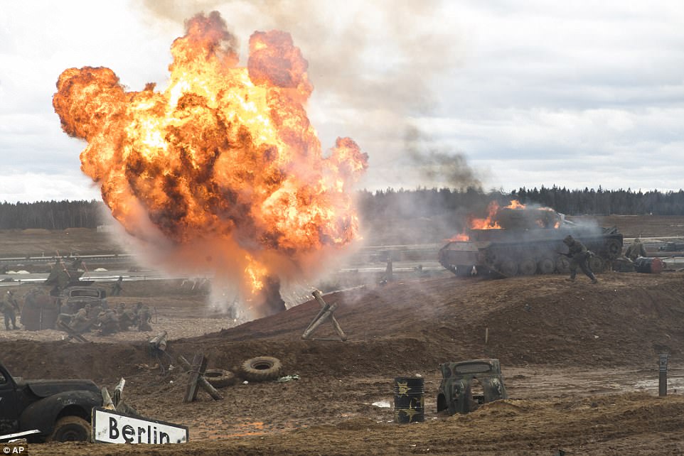 The huge operation was carried out in Kubinka, outside Moscow, when members of historical groups donned Nazi uniforms to replicate the battle for Berlin.