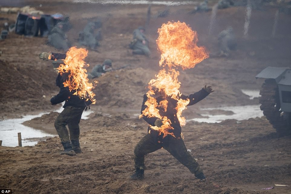 The grim realities of the Second World War were brought to life outside Moscow yesterday, as the final battle in the European conflict was re-enacted.