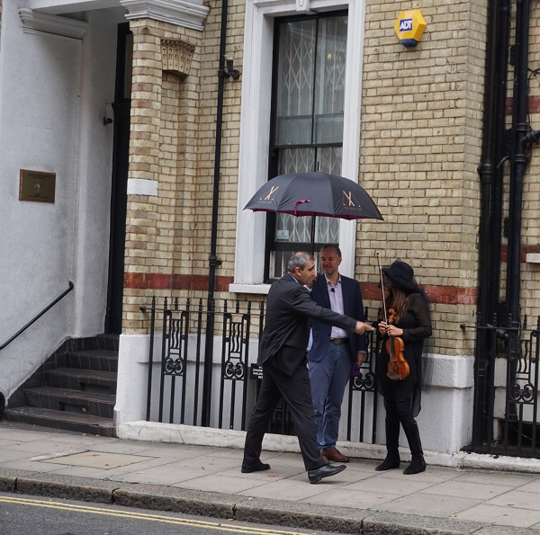 Rising above the hubbub of the London streets, the timbre of the violin soared like the sound of a human voice at the touch of the deft fingers of a mysterious musician. The dark gloomy skies and spatters of rain were a fitting backdrop to this sombre event.