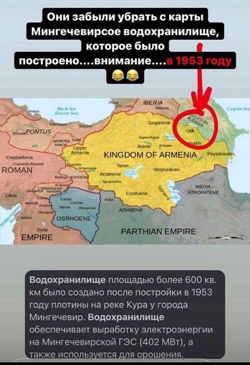 Axar.az, this time the Armenians shared a map of the Mingachevir Hydroelectric Power Plant and "added" it to the "ancient kingdom of Armenia."