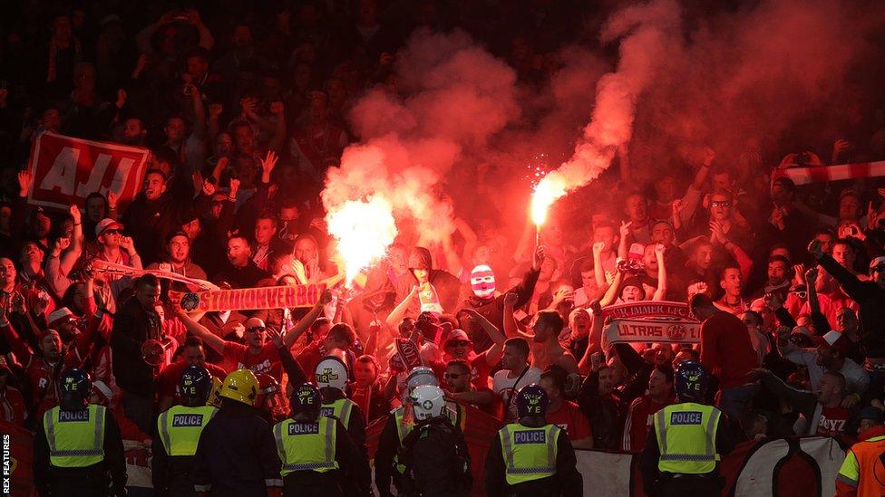 However, BBC Radio 5 live correspondent Richard Conway later reported witnessing disturbances in the stadium before the match eventually kicked off at 21:05 BST.