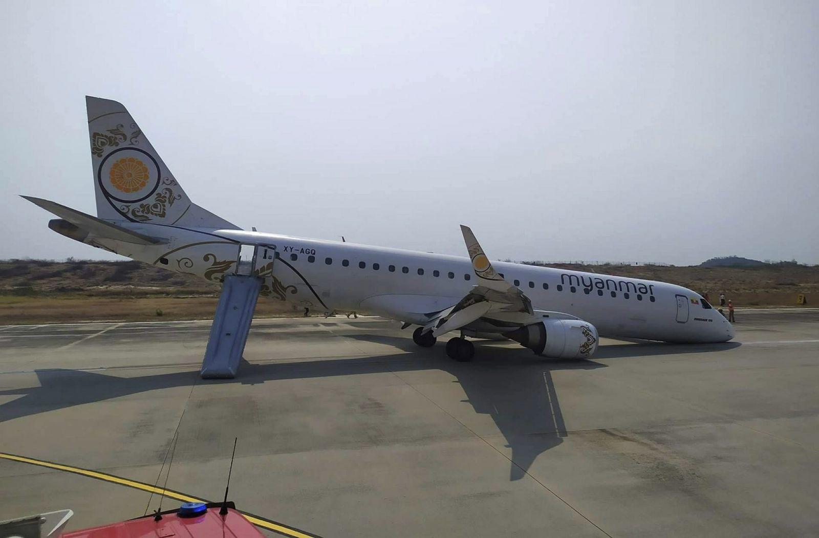 The Myanmar National Airlines plane skidded down the runway at Mandalay airport before grinding to a stop.