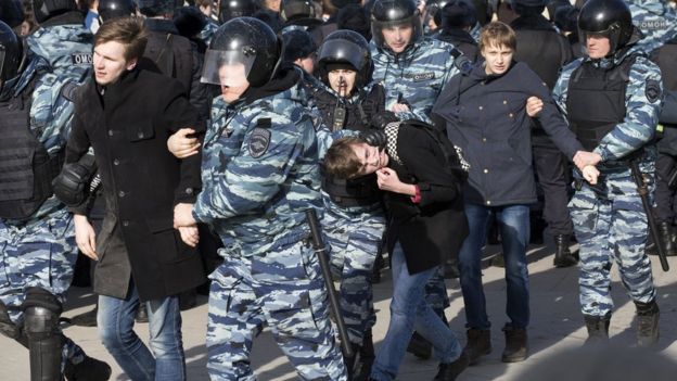 "I was told that there were four minors in one of the police vans, but I have no information on where they are being taken to. When I figure out where they are, I'll start looking into it. They were detained at Pushkinskaya [square in central Moscow]", Bunimovich said.