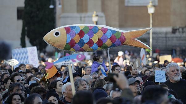 Tens of thousands of people joined a demonstration in central Rome on Saturday organized by a grassroots movement known as “the sardines”, launched only a month ago to protest against far-right leader Matteo Salvini.