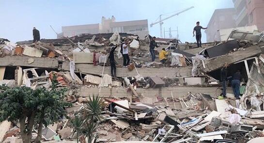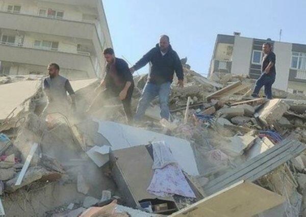 A building collapsed as a result of a strong earthquake in the Bayrakli district of Izmir, Turkey, and three people were rescued from the rubble.
