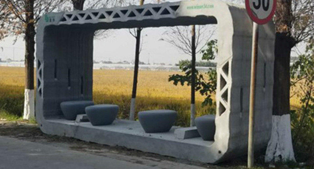 The Chinese company WinSun Construction has unveiled the world's first bus shelter created with the help of a 3D printer.