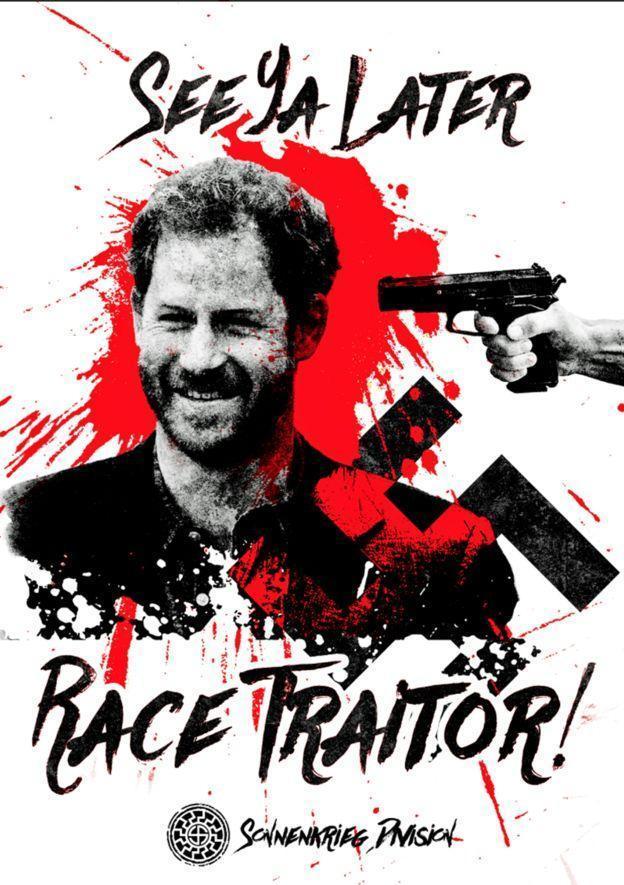 A British radical group, which goes by the name Sonnenkrieg Division, has posted a picture of Prince Harry, his image accompanied by a swastika in the background and a gun pointed at his head. The inscription in the picture reads as follows: “See ya later, race traitor!” referring to the newly-minted Duchess of Sussex’s famously darkish complexion.