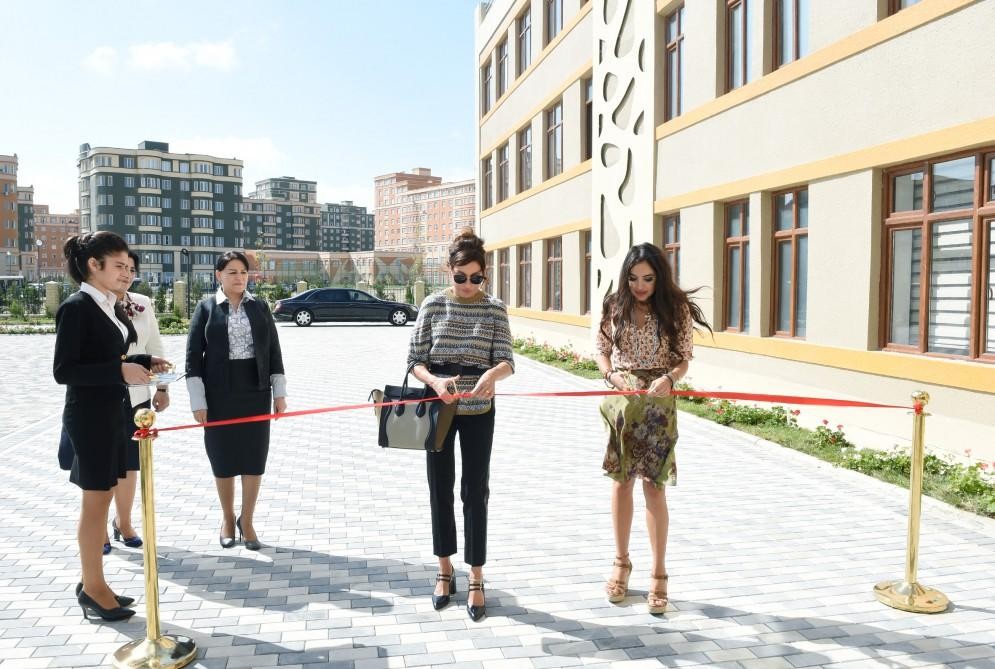Azerbaijan`s first lady, president of the Heydar Aliyev Foundation Mehriban Aliyeva and vice president of the Foundation Leyla Aliyeva attended the opening of school #4 in Masazir, Baku Oct. 6.