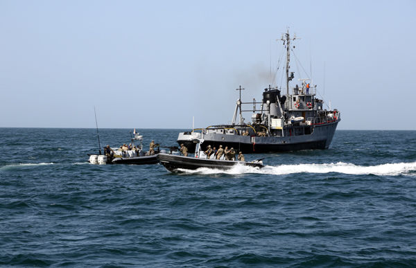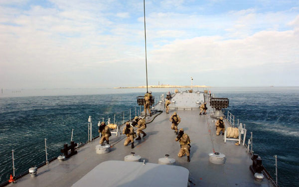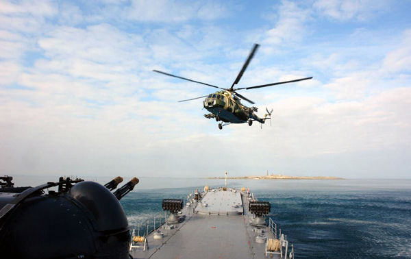 The aim of the exercise phase, carried out with the involvement of ships and boats is the interoperability with other branches of Armed Forces in fulfilling tasks on the protection of energy infrastructure in the operational zone of the Caspian Sea, the release of the ship captured by terrorist sabotage group, with the landing of special forces group from helicopters on the ship's board.