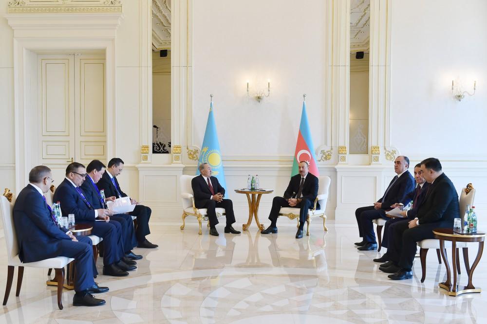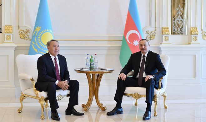 After welcome ceremony, President of Azerbaijan Ilham Aliyev and President of Kazakhstan Republic Nursultan Nazarbayev held a meeting today.