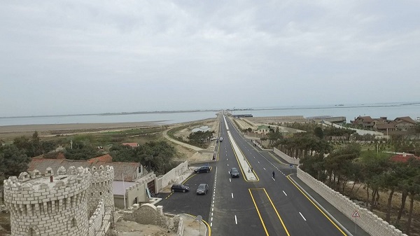 President of Azeravtoyol OJSC Saleh Mammadov informed the president about the bridge. The new bridge with the width of 14 m, length of 441, is located in the 23rd km of Gala-Pirallahi motor road.