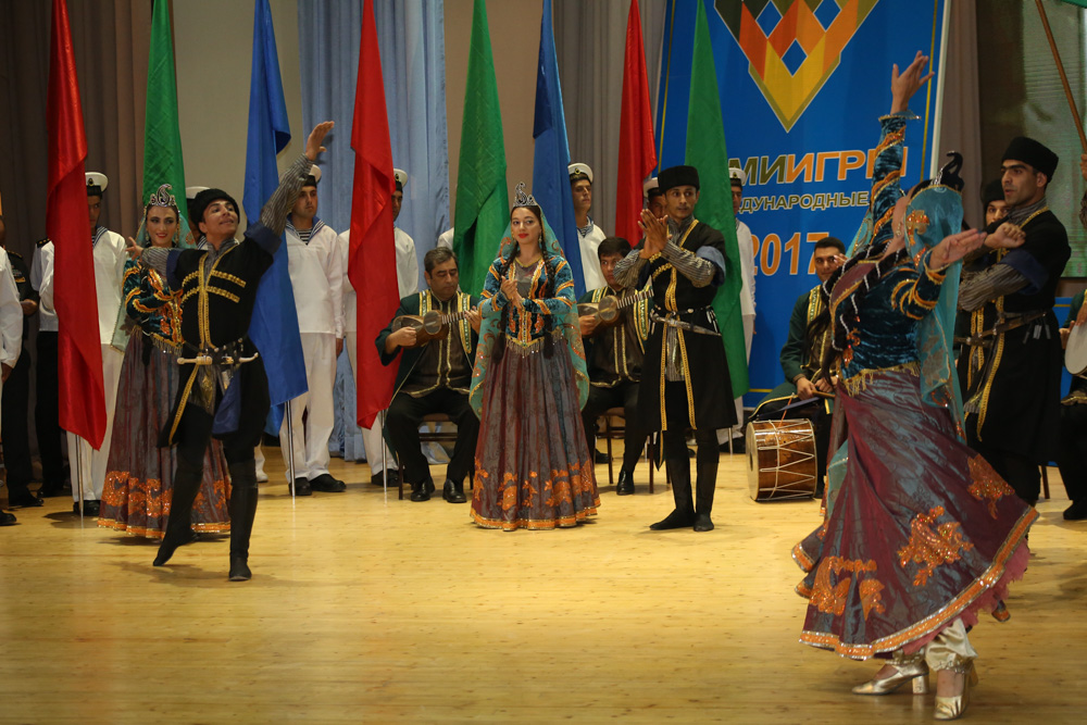 The national anthems of Azerbaijan and Russia were played in honor of the teams of Azerbaijan and Russia, which took the first place in the contest.