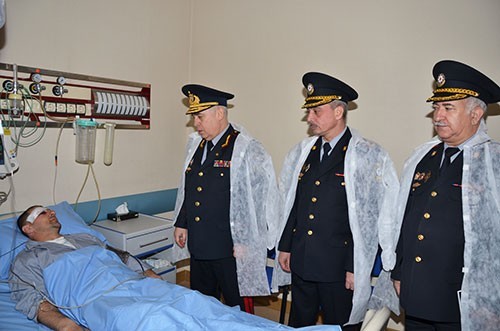 Police sergeant Ramiq Zeynalov seriously injured in head on April 6, as a result of the shelling of Gulustan village of Goranboy district of Azerbaijan by Armenian armed forces. He rushed to the Republican Hospital named after Lieutenant General Arif Heydarov.