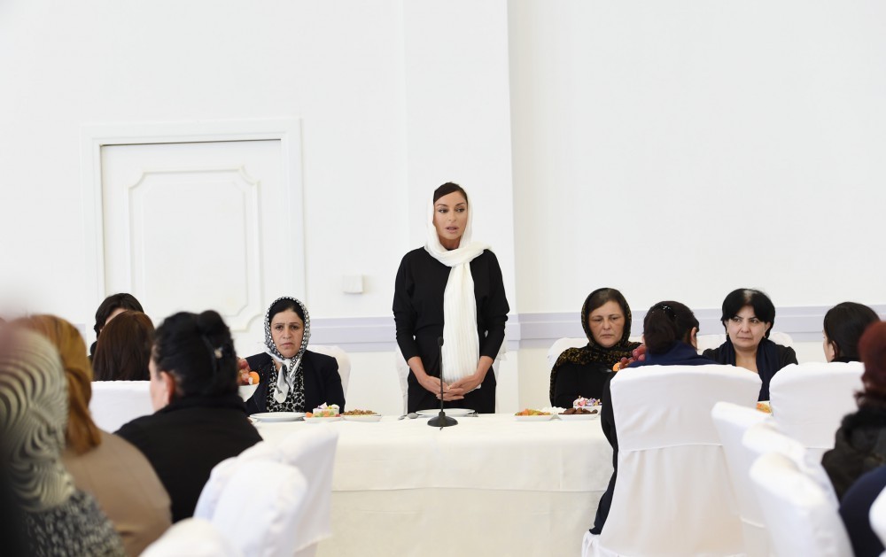 President of the Heydar Aliyev Foundation Mehriban Aliyeva met with family members and relatives of the servicemen, who were recently martyred and wounded in the battles for the territorial integrity of Azerbaijan as a result of the violation of the ceasefire by the enemy on the frontline.