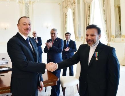 The head of state hailed Mahmoud Vaezi`s contributions to the development of friendly relations between the two countries, adding the Azerbaijani government and people appreciated this. President Ilham Aliyev said Minister of Information and Communications Technology of Iran Mahmoud Vaezi was awarded the “Dostluq” (Friendship) Order, one of the high state awards of Azerbaijan, for his contributions to the development of friendly and cooperative ties between the Republic of Azerbaijan and the Islamic Republic of Iran, and handed the Order to him.