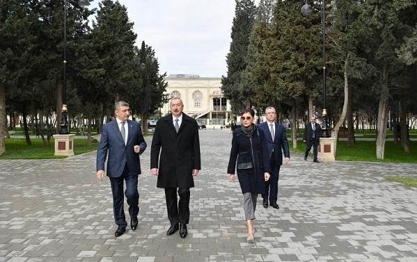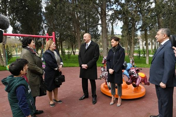 President of the Republic of Azerbaijan Ilham Aliyev and first lady Mehriban Aliyeva have viewed conditions created at a newly-reconstructed Neftchilar park in Garachukhur settlement, Surakhani district, Baku.