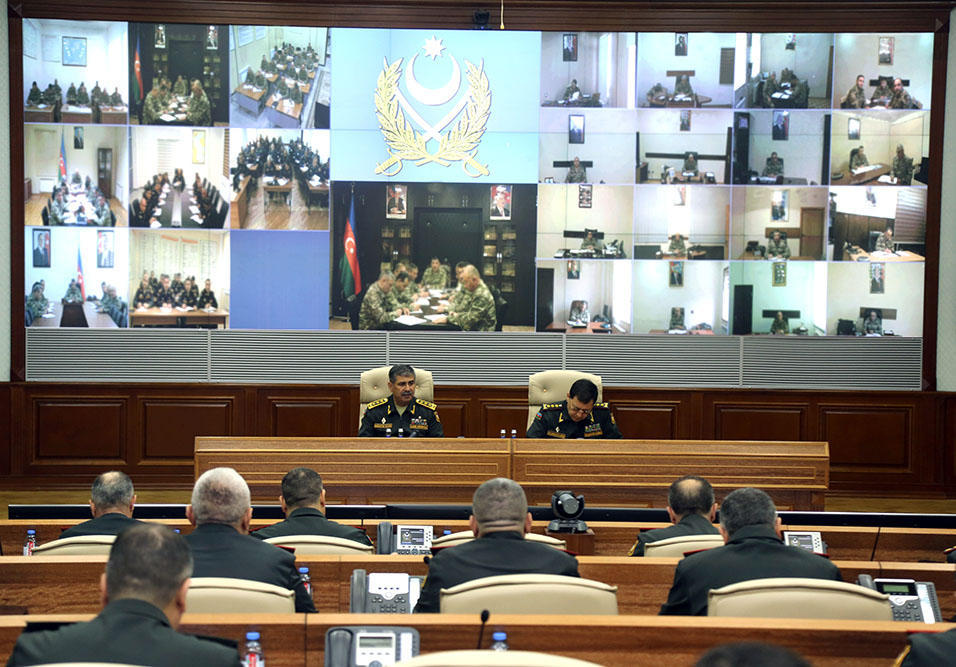 The meeting held with the participation of the deputies of defense minister, commanders of the branches of troops, chiefs of the main departments, departments and services of the ministry, as well as commanders of the army corps also involved the commanders of formations and other responsible officers via video communication.
