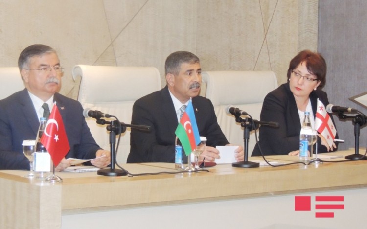 Following their private and trilateral talks, Azerbaijani Defense Minister, Colonel-General Zakir Hasanov, Georgian Defense Minister Tinatin Khidasheli and Turkish National Defense Minister Ismet Yilmaz held a joint press conference.