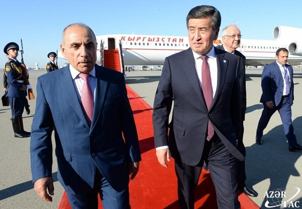 Kyrgyz President Sooronbay Jeenbekov was greeted at the airport by First Deputy Prime Minister of the Republic of Azerbaijan Yagub Eyyubov and other officials.