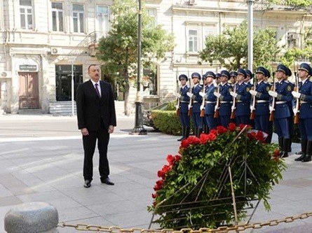 Today, Azerbaijani President has visited the monument erected in honor of Azerbaijan Democratic Republic at the Istiglaliyyat street of Baku city on the occassion of the May 28 - Republic Day in the country.