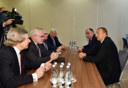 Azerbaijani President Ilham Aliyev met with the co-chairs of the OSCE Minsk Group James Warlick, Igor Popov, Pierre Andrieu and Personal Representative to the OSCE Chairperson-in-Office Andrzej Kasprzyk in Warsaw on July 8.