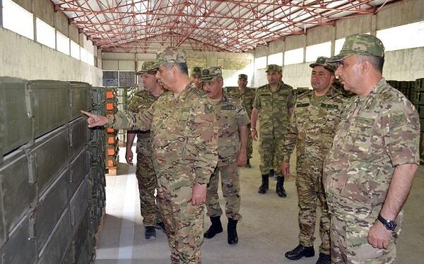 Then Colonel General Z. Hasanov inspected the warehouses of logistics being under construction. It was emphasized that in order to organize the continual and sustainable activity of the troops, regardless of the climatic conditions and terrain, the units will be centrally provided with ammunition, fuel and lubricants, as well as other necessary spare parts and equipment through warehouses built with the consideration of modern requirements.