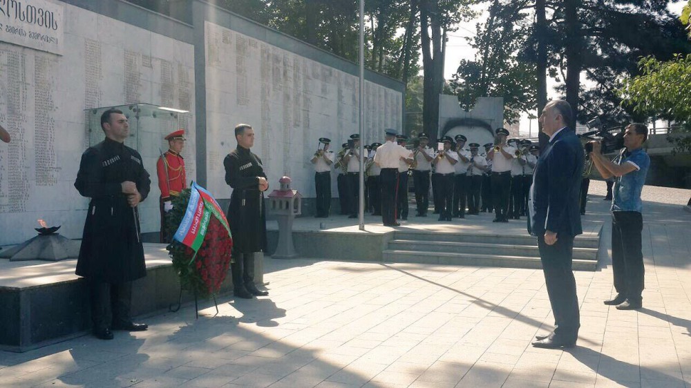 Azerbaijan`s Foreign Minister Elmar Mammadyarov visited a statue of national leader Heydar Aliyev in Tbilisi as part of his official visit to Georgia.