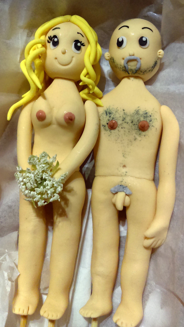 Jeff and Sue stayed in the buff for the duration of the ceremony, wedding breakfast and evening reception and even had nude cake toppers crafted out of fondant icing.