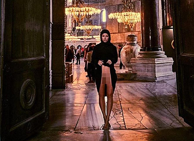 She earlier flashed her body at a temple complex in Egypt and at a former mosque in Turkey - much to the outrage of Christians and Muslims alike.