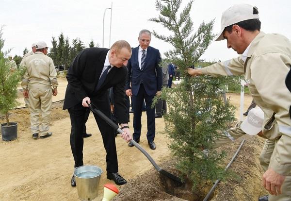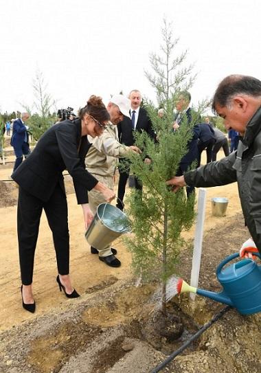 President of the Republic of Azerbaijan Ilham Aliyev, first lady Mehriban Aliyeva and family members have attended a tree-planting campaign on the occasion of the 96th birthday anniversary of national leader Heydar Aliyev. The campaign took place in a green space, which is created on the 28th km of Zigh-Heydar Aliyev International Airport highway.