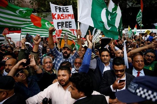 In London, protesters carried banners saying “Kashmir is Burning”, “Free Kashmir” and “Modi: Make Tea Not War”, according to a Reuters reporter.
