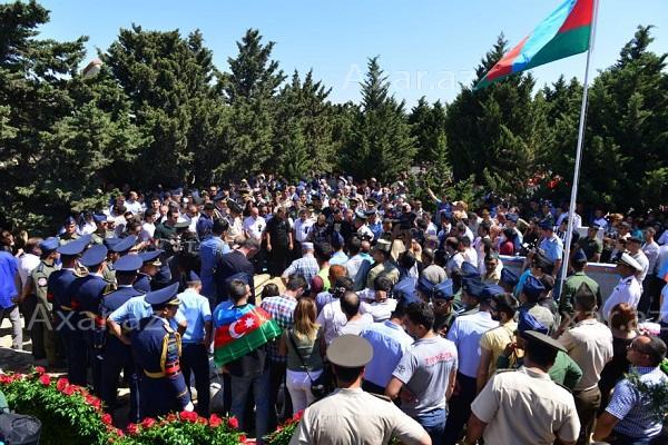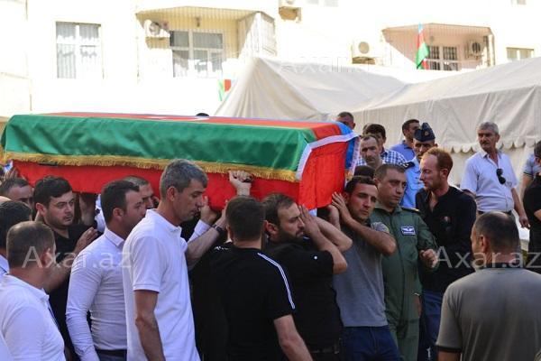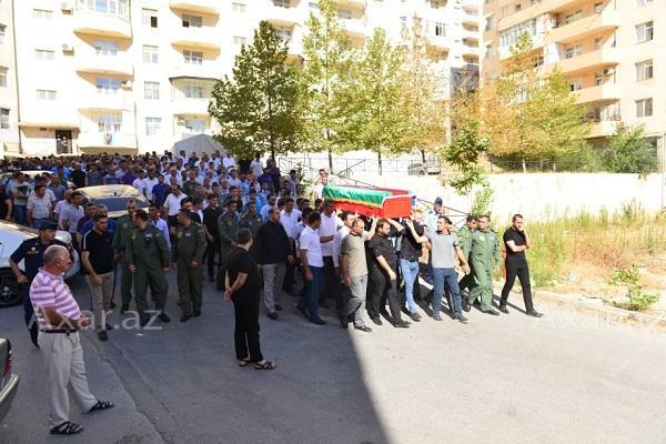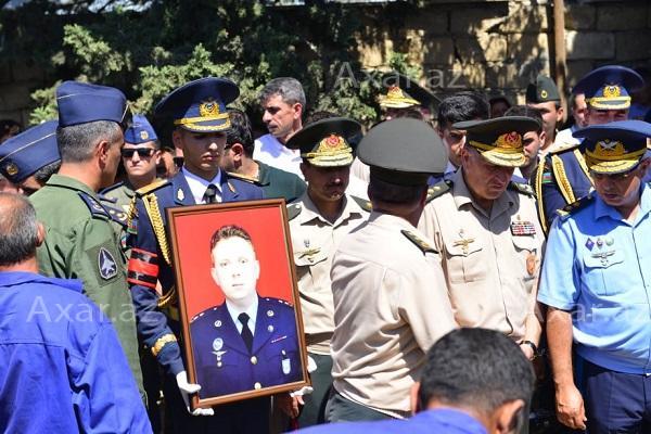 Axar.az informs that, the farewell ceremony with the Lieutenant Colonel Rashad Atakishiyev, the pilot of the Azerbaijani Air Force ended. The funeral from Dadash Bunyadzadeh Street in Yasamal district was taken to the Ministry of Defense Training Training Center for an official farewell ceremony.