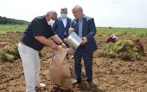 Axar.az reports that the head of the region met with workers and picked potatoes on the occasion of May 28 Republic Day.